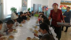 Жети-өгүздүк ашпозчу Г.Акимканова 15 жылдан бери окуучуларга түрдүү тамактарды жасайт